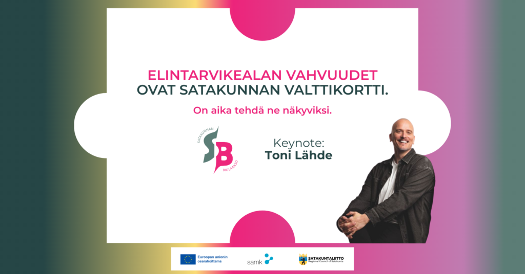 Keynote-puheenvuorossa brändistrategi Toni Lähde, joka näyttää, miten yritykset löytävät oman kilpailuetunsa ja rakentavat brändin, joka puhuttelee yleisöä – ja miten yhteistyöllä voidaan luoda vielä vaikuttavampaa alueellista näkyvyyttä. Puheenvuoro tarjoaa oivalluksia ja konkreettisia työkaluja Satakunnan Biolaakson toimijoille.